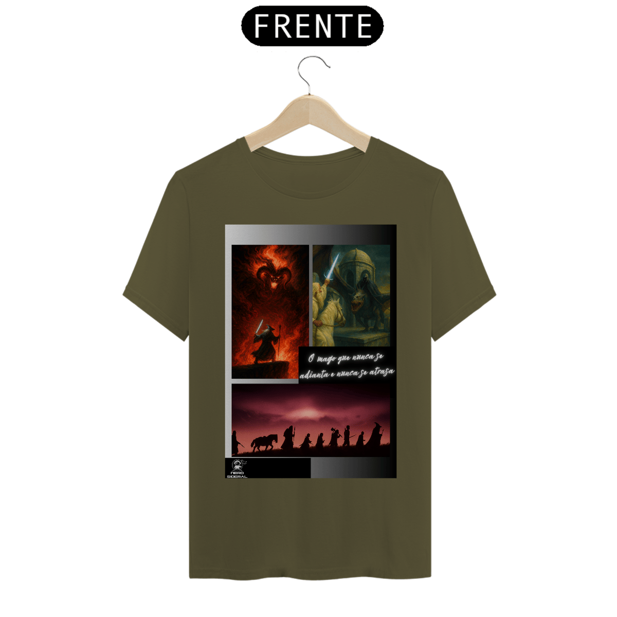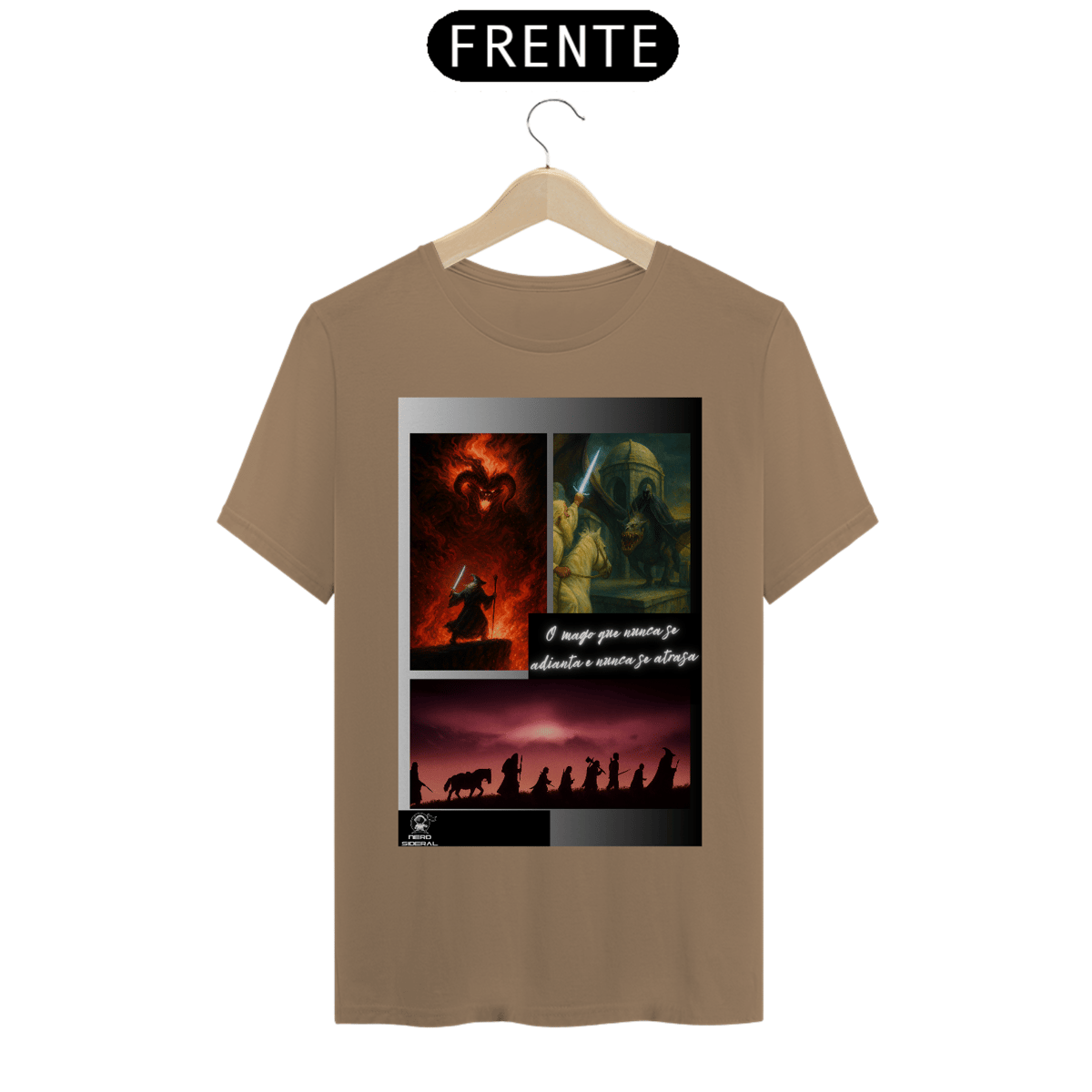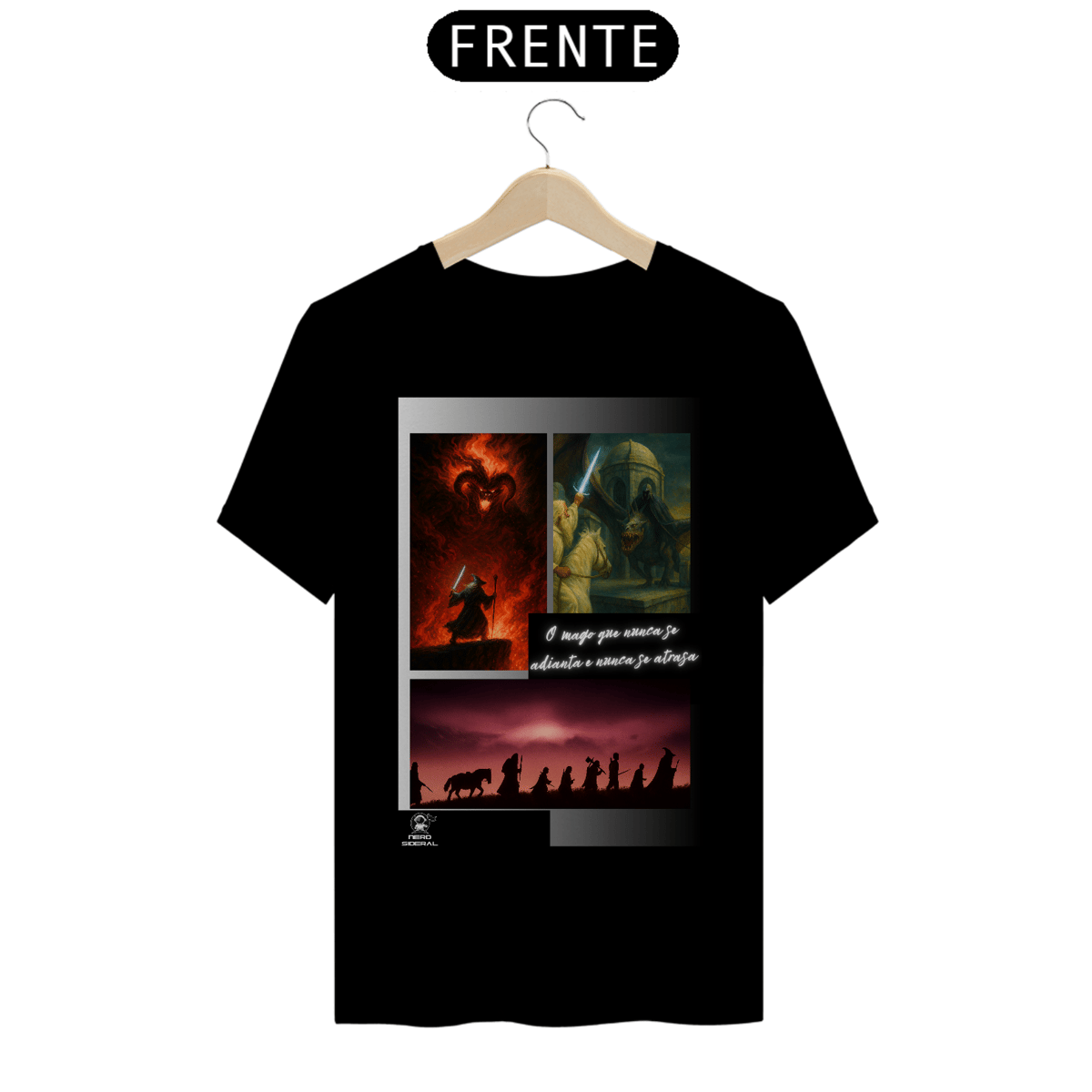 Essa camiseta é um tributo visual à sabedoria e imponência de Gandalf, com uma arte que captura momentos marcantes de sua jornada: o confronto com o Balrog, sua postura imponente diante do Rei Bruxo e a travessia épica com a Sociedade do Anel. Uma peça que carrega o peso da mitologia de Tolkien e a força de um mago que não é apenas personagem, mas símbolo de liderança, coragem e tempo certo.