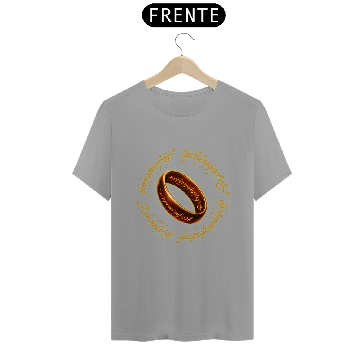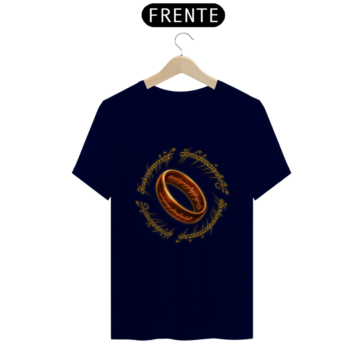 Nesta camiseta exclusiva da Nerd Sideral, a lendária joia é retratada em sua forma mais imponente: dourada, brilhante e envolta pela inscrição em Tengwar.