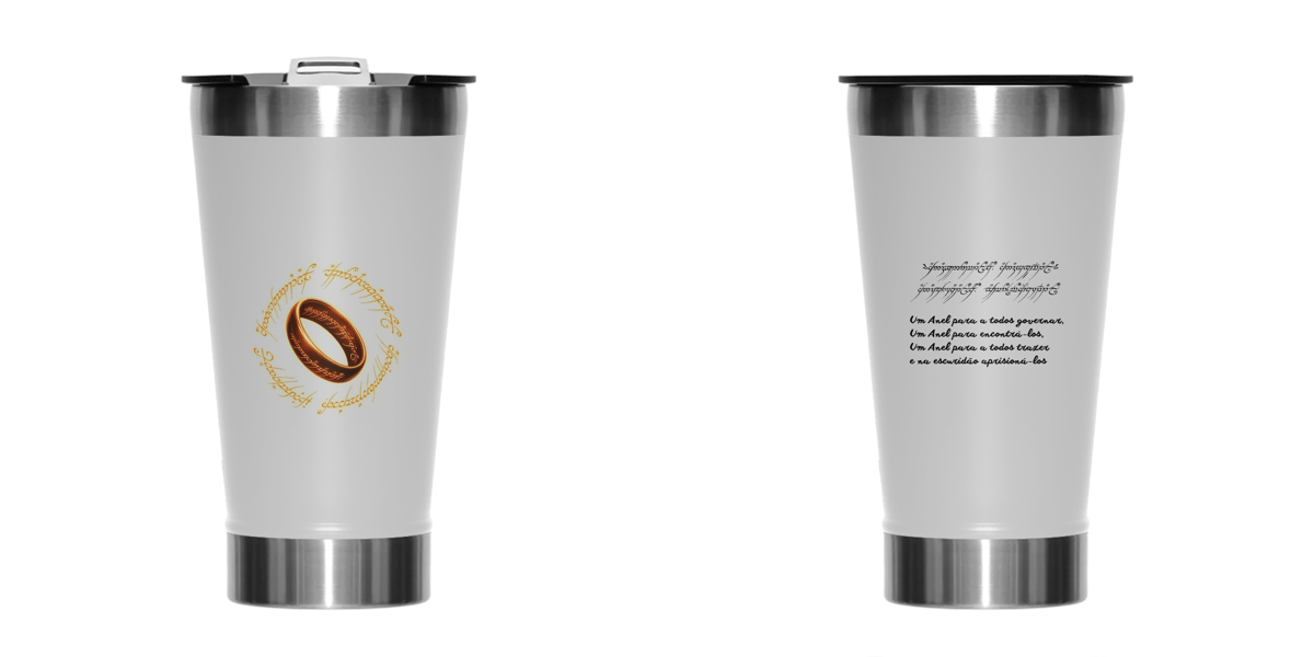 Se Sauron tivesse um desses, talvez nem tivesse criado o Um Anel — afinal, quem precisa dominar a Terra-média quando se tem um copo térmico estiloso com a inscrição mais icônica da literatura fantástica?
